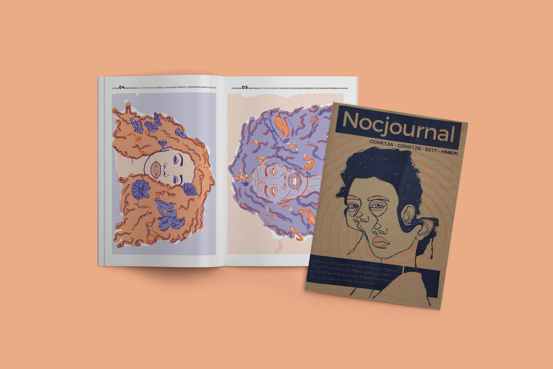 Nocjournal ist ein Magazin, das zusammen mit meinen Kommilitonen in dem Kurs Prepress/Press konzipiert und gestaltet wurde. Es beinhaltet Illustrationen, Artikel & Geschichten, die sich rund um das Thema »Traum« drehen. Jeder Student bekam eine Doppelseite und war frei in der Gestaltung dieser.
